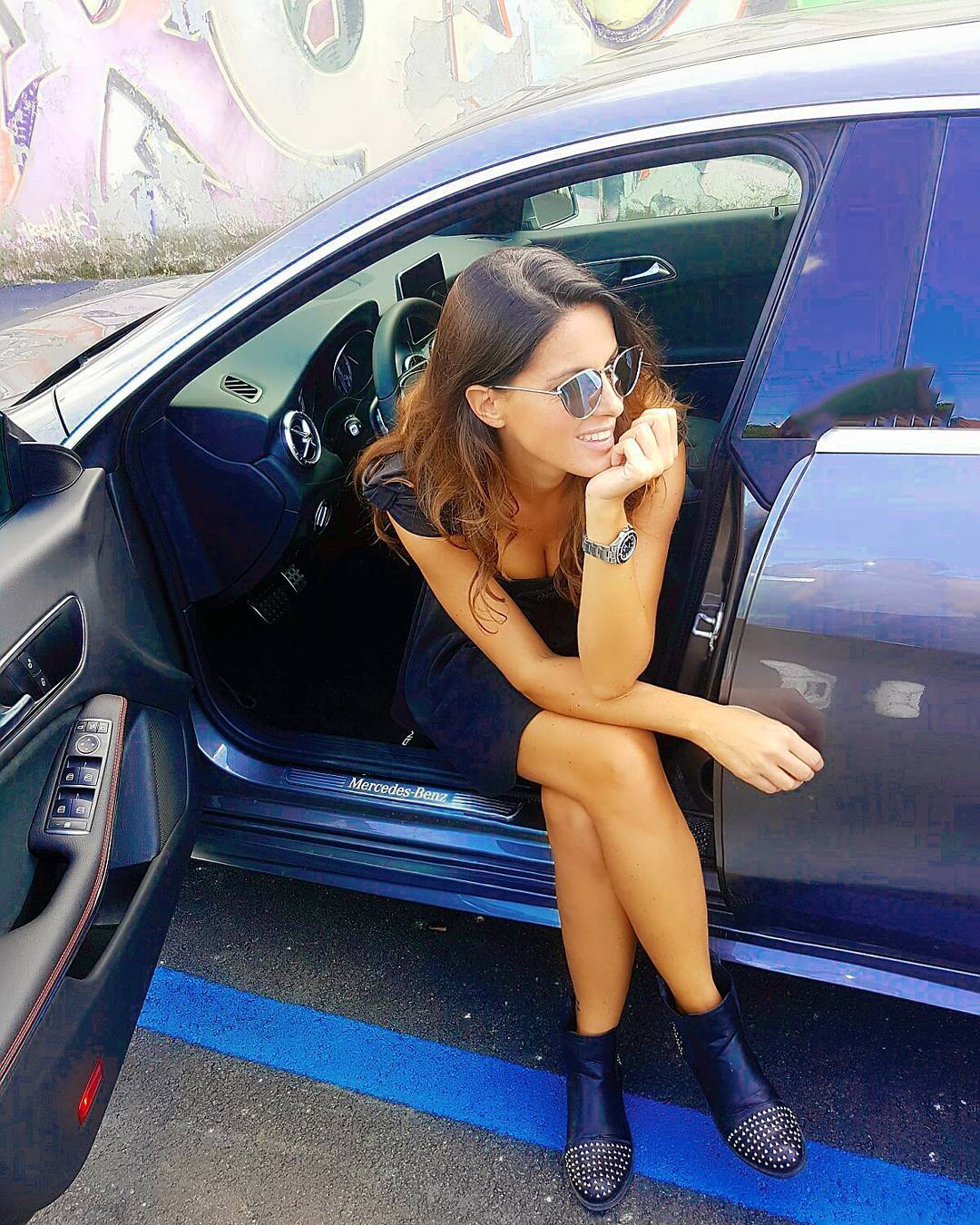 ENGELEN NAOKO (@naokoengelen) on Instagram: “Vibe 🔥💯 #ootd #fashionvibes #sneakergirl #freshnails #phillipplein #mercedesamg” (August 27th 2018)